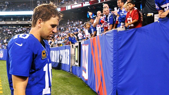 D.T.: Eli Manning’s crowning achievements have been finding a wide receiver who won’t drop his passes, and Peyton Manning throwing more career interceptions than him.